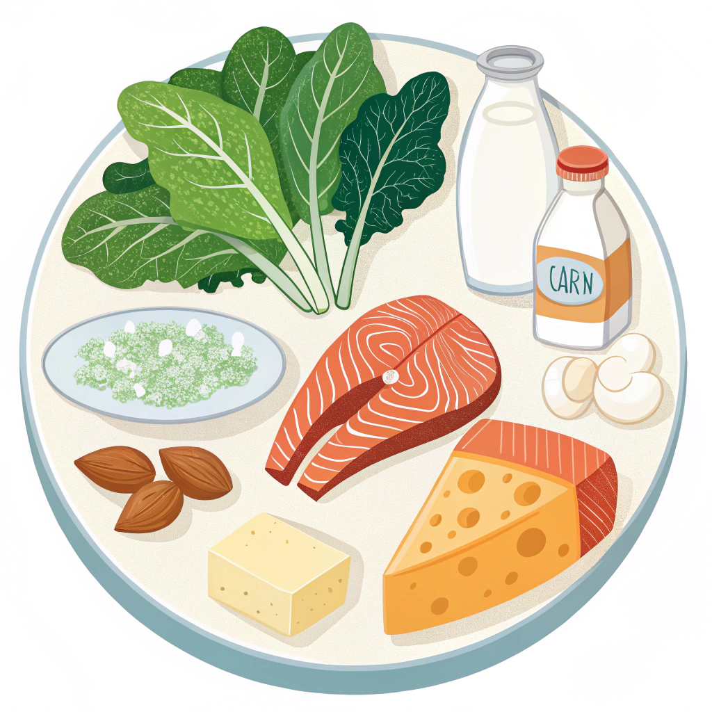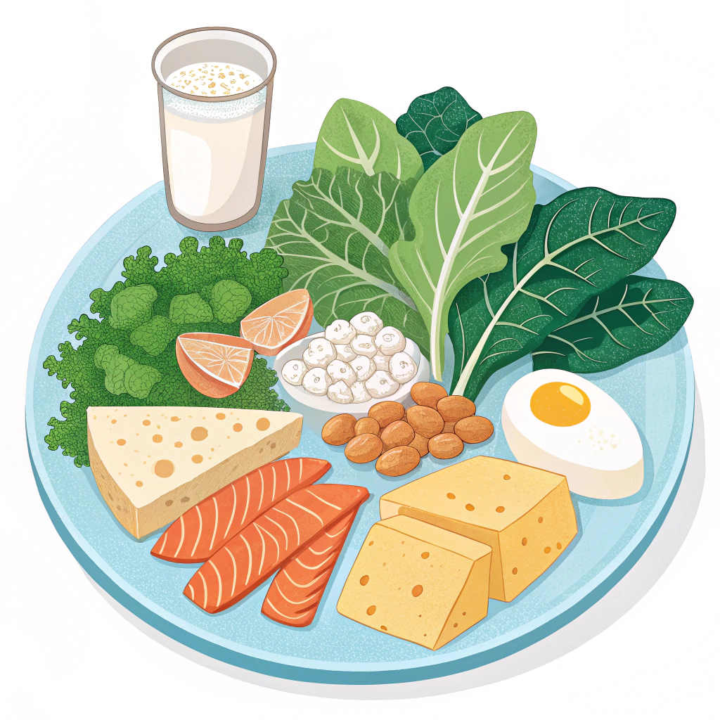 A3. 칼슘, 비타민D, 단백질이 풍부한 음식을 섭취하는 것이 좋아요. 우유, 멸치, 두부, 생선, 콩, 견과류 등이 추천돼요.