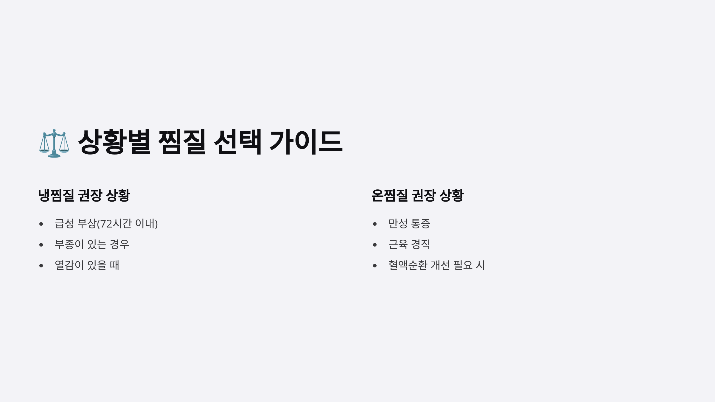 ⚖️ 상황별 찜질법 선택 가이드