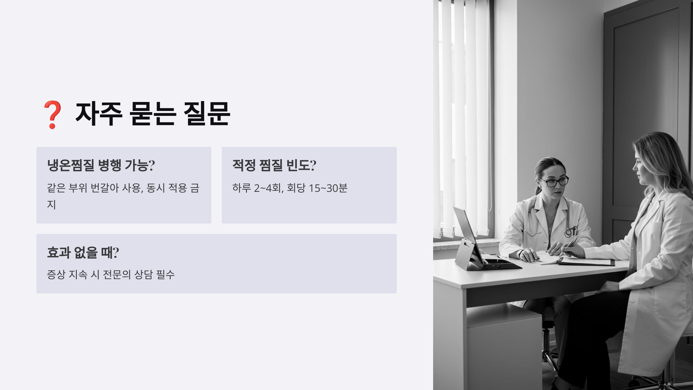 | 통증 악화 | 부적절한 선택 | 찜질법 변경 | 전문가 상담 |