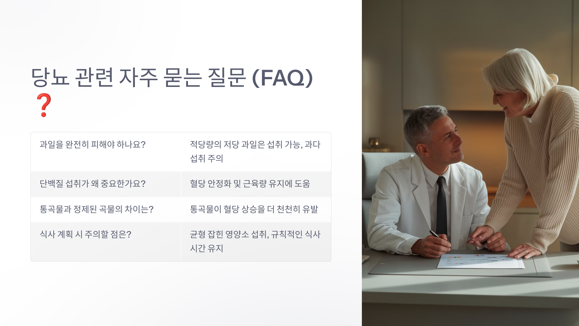 당뇨는 꾸준한 관리가 중요한 질환이에요. 좋은 음식 선택, 규칙적인 운동, 건강한 생활 습관을 유지하면 혈당을 안정적으로 조절할 수 있어요. 💪😊