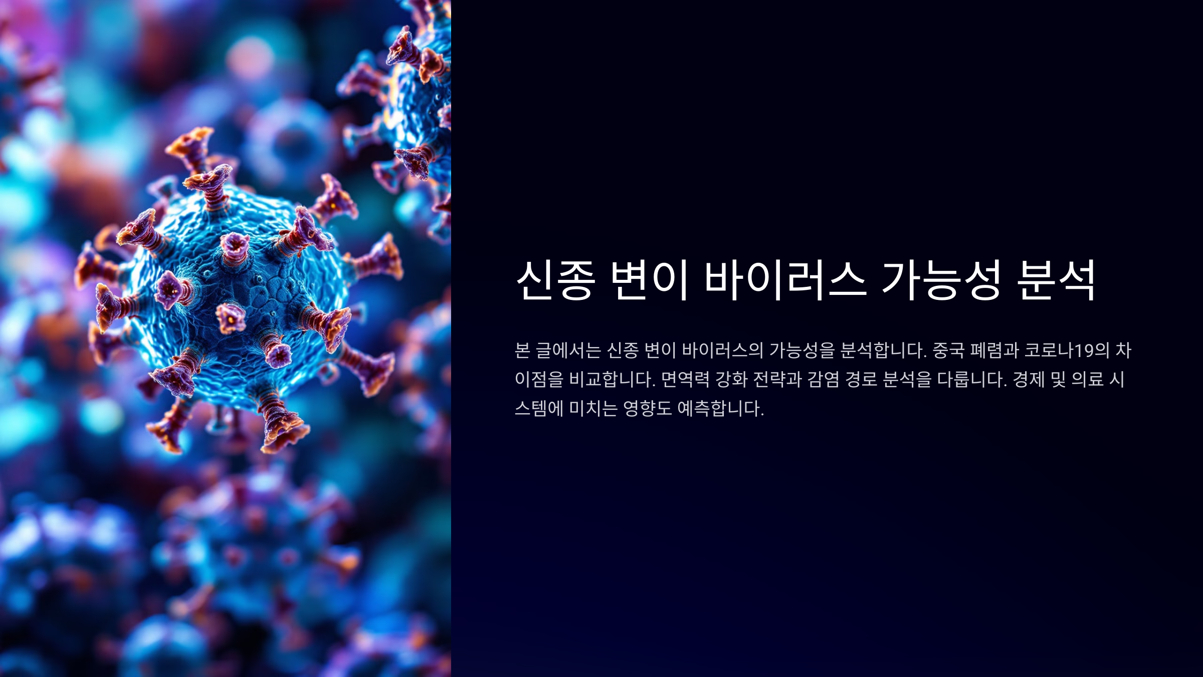 이 신종 폐렴이 코로나19와 어떻게 다른지, 개인이 어떻게 방어할 수 있는지, 그리고 경제 및 의료 시스템에 미칠 영향까지 종합적으로 분석해 볼게요. 또한, 과학적 근거를 바탕으로 전파 방식과 면역력의 중요성을 살펴보면서, 현재 우리가 어떤 준비를 해야 할지 알아보도록 해요.