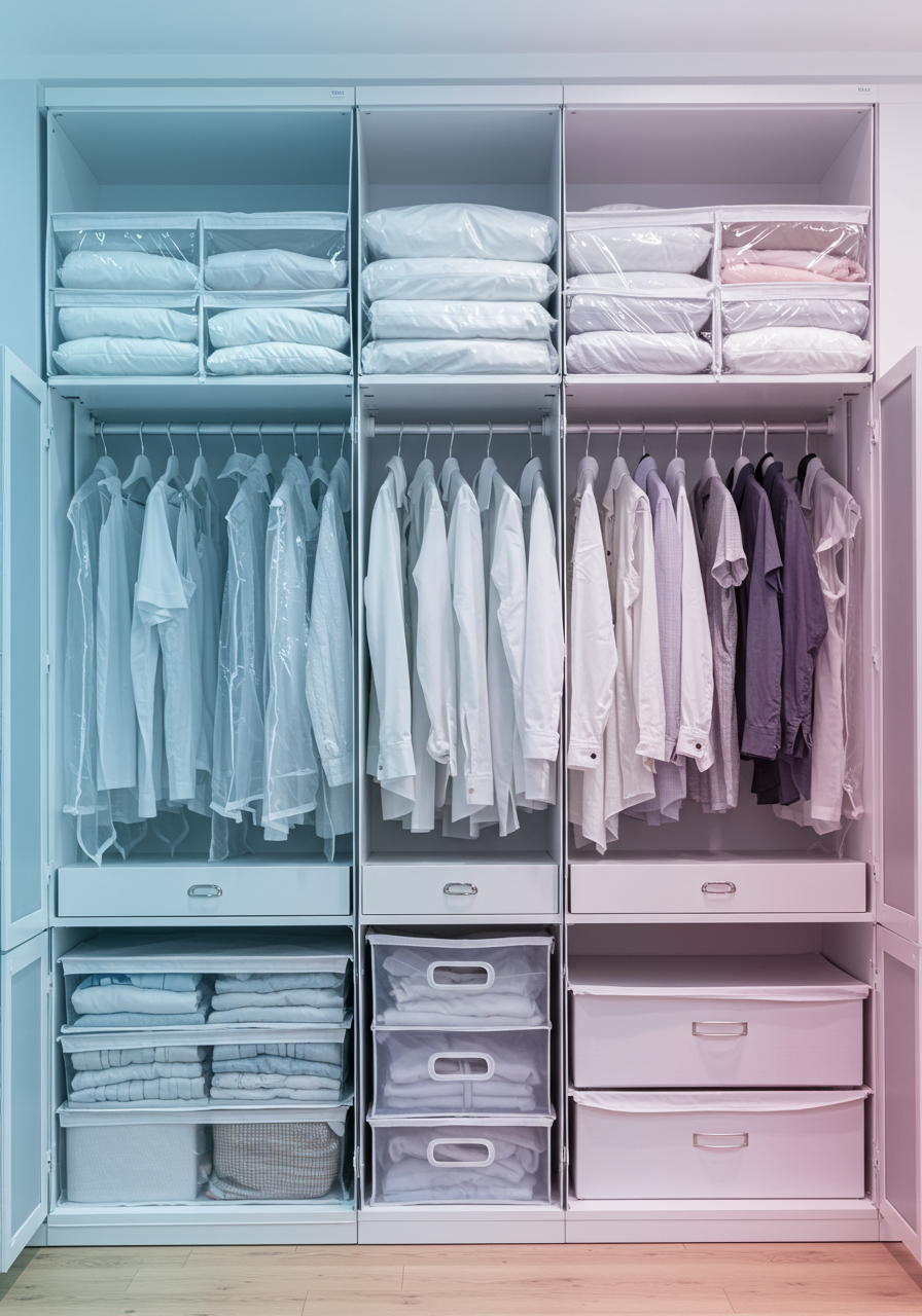 공기 흐름을 최적화하기 위해서는 옷장 내부 구조도 중요해요. 선반과 선반 사이에 충분한 간격을 두고 벽면과 의류 사이에도 5cm 이상의 공간을 확보해야 해요. 의류를 너무 빽빽하게 걸지 말고 적당한 간격을 유지해서 공기가 순환할 수 있도록 해주세요. 투습성이 좋은 부직포 커버를 사용하면 먼지는 막으면서도 공기 순환은 원활하게 할 수 있어요. 서랍장도 완전히 밀폐하지 말고 약간의 틈을 두어서 공기가 통하도록 하는 것이 좋답니다. 계절별로 사용하지 않는 의류는 별도 보관해서 공간 활용도를 높이는 것도 중요해요.