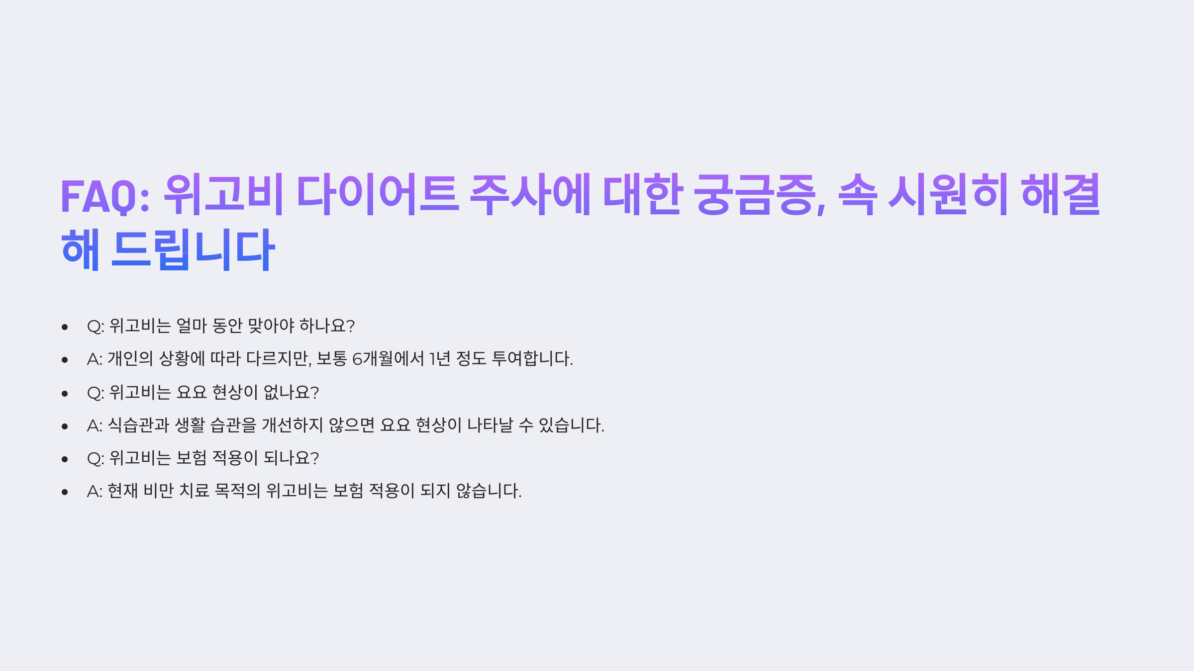 📌 위고비 다이어트 주사 관련 자주 묻는 질문 (FAQ)