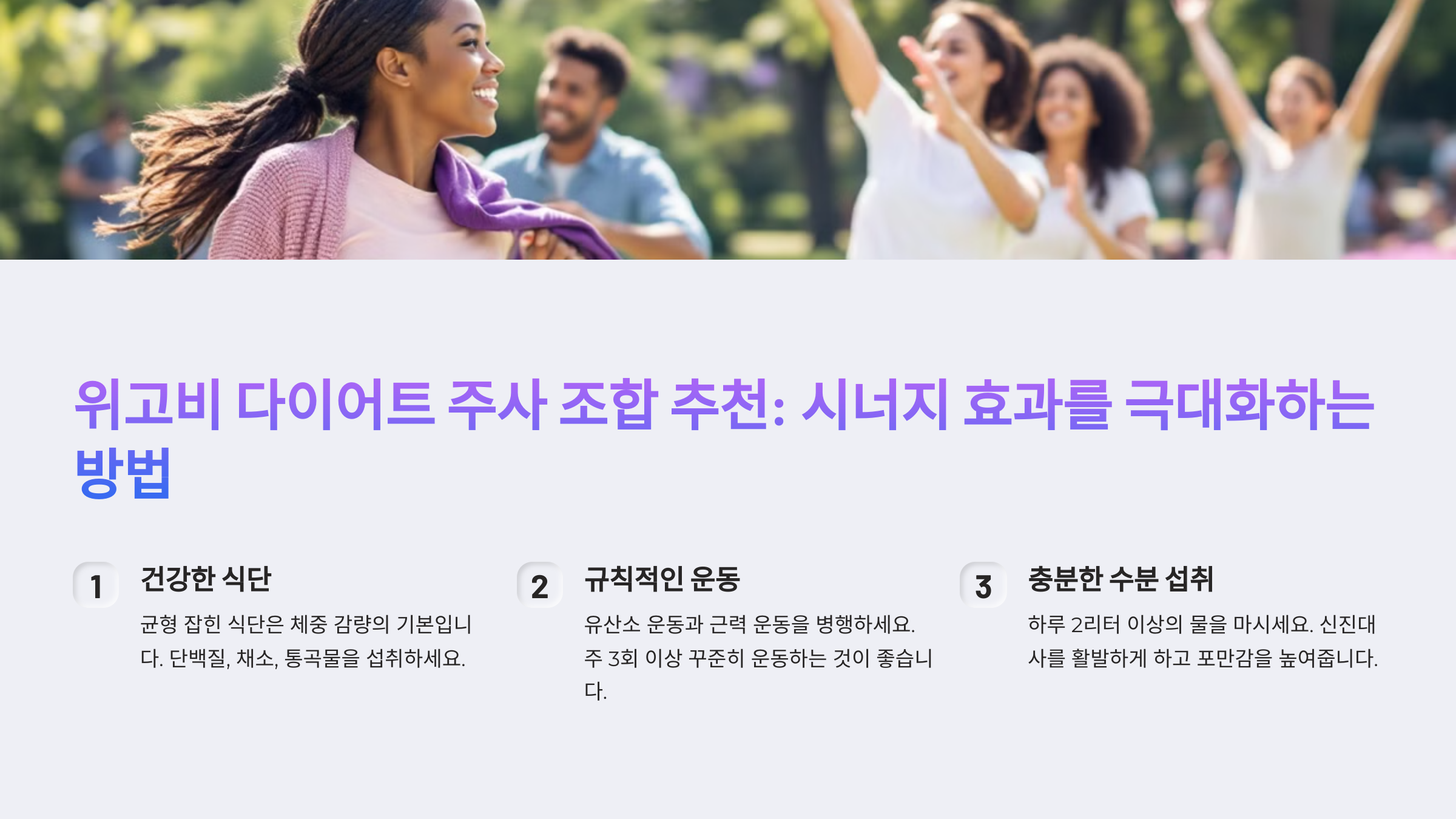 | 위고비 + 운동 | 대사율 증가 & 체중 감량 가속화 | 건강한 체중 감량을 원하는 사람 |