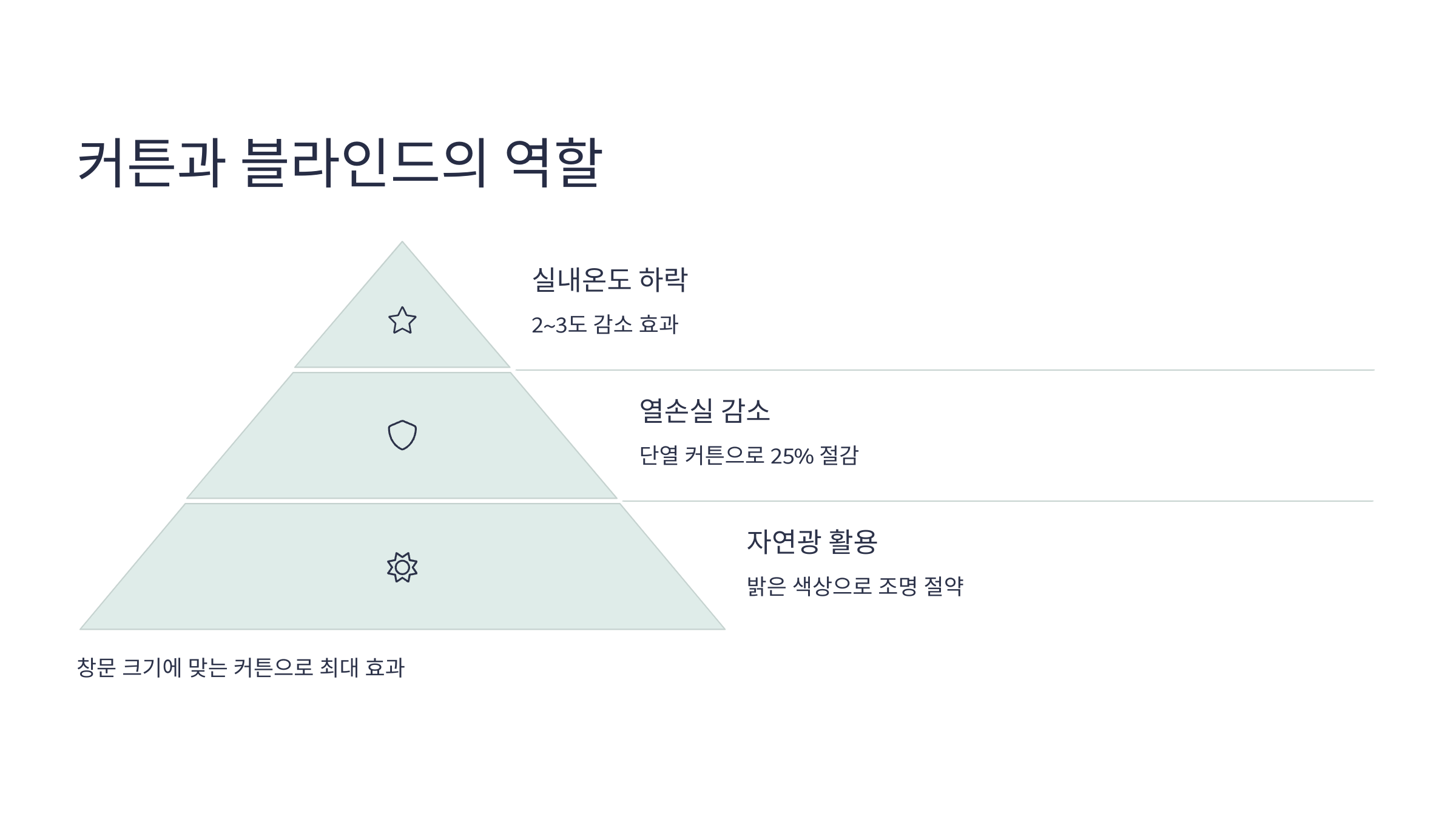 여름철 전기세를 줄이기 위해서는 햇빛 차단이 정말 중요해요. 직사광선이 실내로 들어오면 실내 온도가 금방 올라가서 에어컨이 더 열심히 돌아야 하거든요. 커튼과 블라인드를 활용하면 이 문제를 해결할 수 있답니다! 🌞
