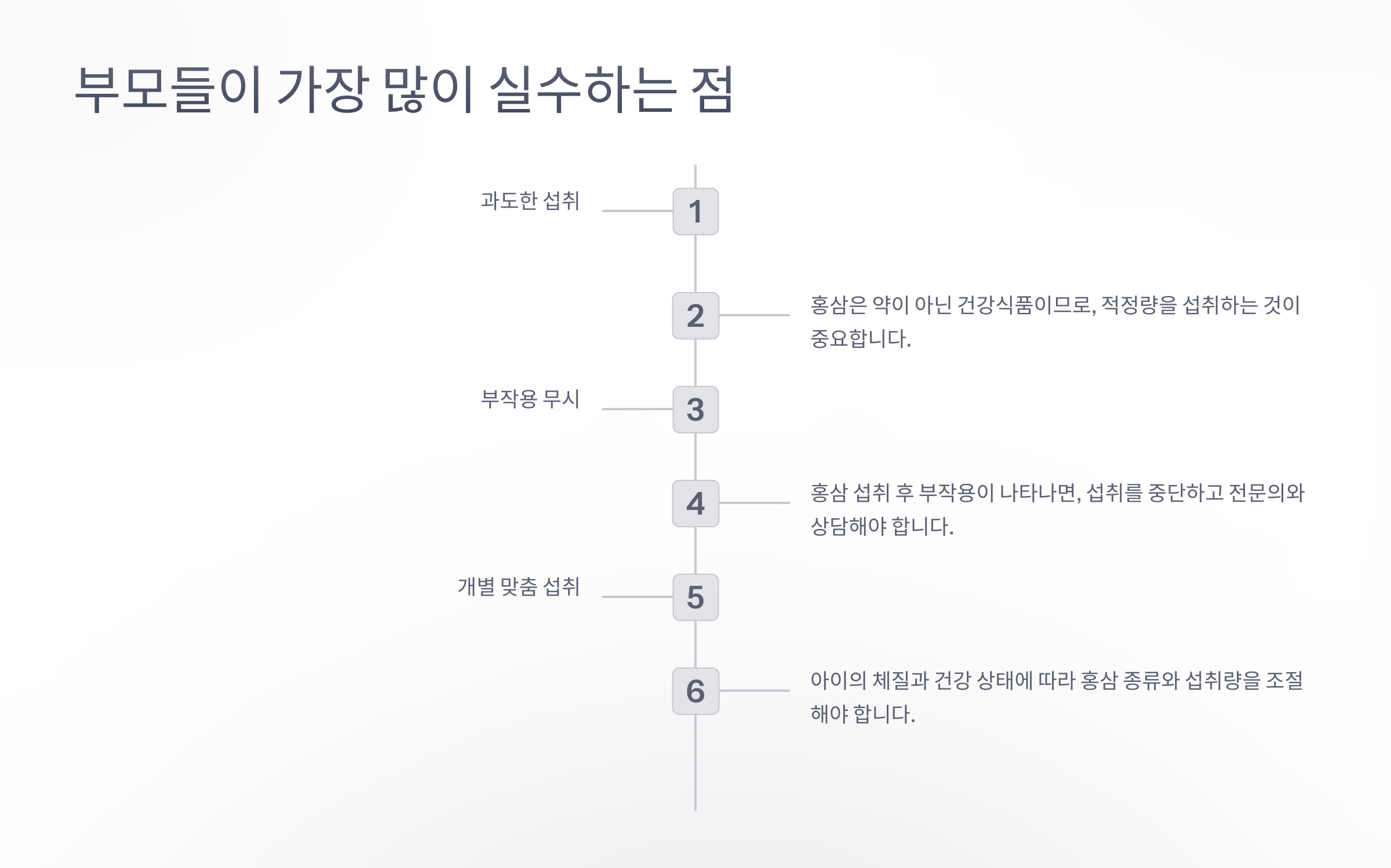 홍삼을 먹일 때 부모님들이 자주 실수하는 부분이 있어요. 아무리 몸에 좋은 홍삼이라도 잘못된 방식으로 섭취하면 오히려 역효과가 날 수 있어요.
